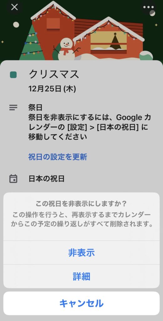 Googleカレンダーを見ていたら、12/25にクリスマスの表示があった。