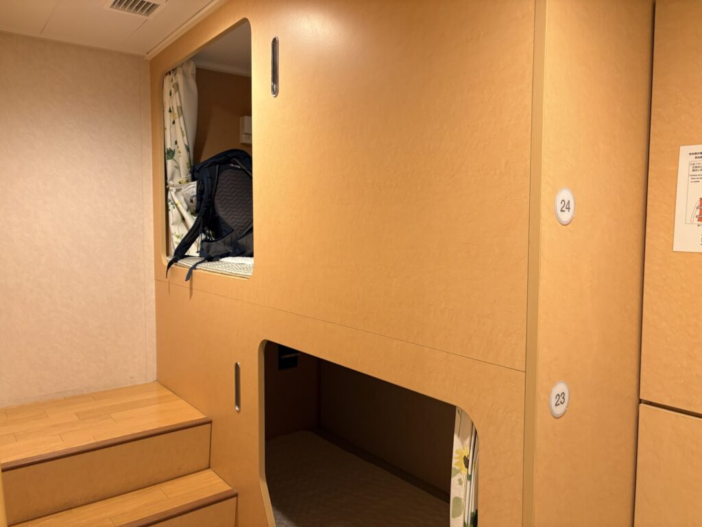 上の段を予約したが、下の段は空室だったので、気楽。寝台を挟んで(裏側に)同じ部屋の人が4名。直接は顔を合わせないので気楽。