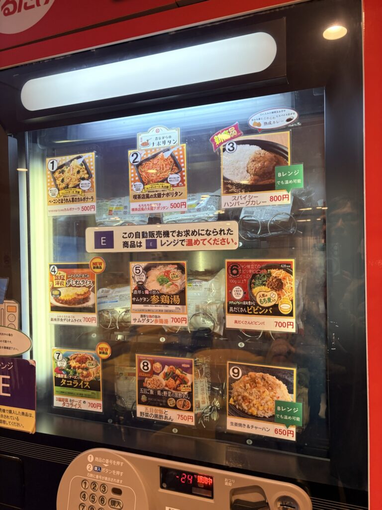 レストランは無く、冷凍食品の自販機で購入してレンジで温める。