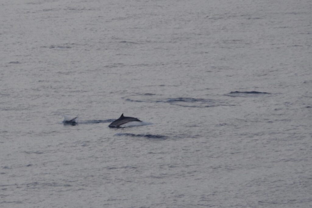 海面の様子がおかしいところがあったので見ていたら、イルカが跳ねていた。